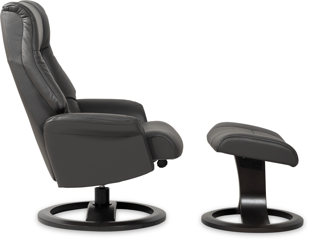 人間工学に基づいて設計されたフットスツールは、快適さに欠かせない存在。脚の長さに合わせて位置を調整でき、角度をつけることで血行を促します。
