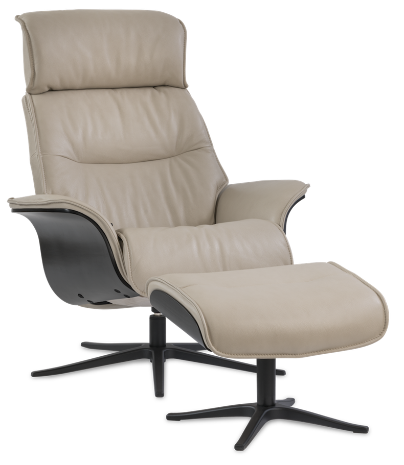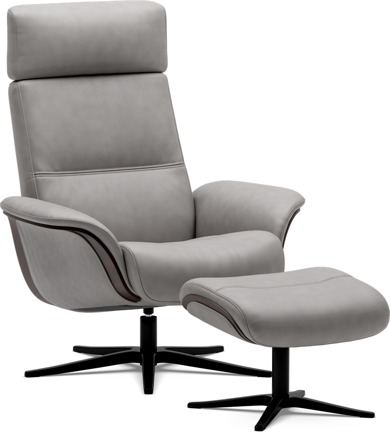 スペースは、ギャラクシーのなかで最も人気のあるコンテンポラリーデザイン。ご自宅のリビングをモダンに快適にしてくれるリクライニングチェアです。背もたれと座面に自社製造の高品質モールドウレタンを使用し、体を優しく包み込むようにサポートします。さらにレバー式でスムーズなリクライニングと、人間工学に基づいて傾斜をつけたオットマンで、デザインと快適性の完璧なバランスを実現しました。リクライニングはお好きな角度で固定できます。モダンテイストのスター型ベースは、ポリッシュ仕上げとマットブラック仕上げからお選びいただけます。また、高級レザーや機能的なファブリックなど、お客様のスタイルや好みに合わせて幅広い選択肢をご用意しています。ゆったりとくつろげる最高のチェアとして、スペースで無限のスタイルコンビネーションをお楽しみください。